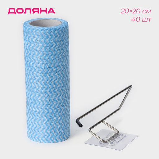 Салфетки в рулоне многоразовые безворсовые в наборе с держателем Доляна, 40 шт, 2020 см, цвет голубой