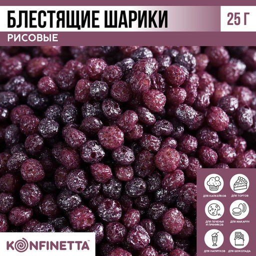 Рисовые шарики блестящие Фиолетовые для капкейков, тортов и куличей, 25 г.