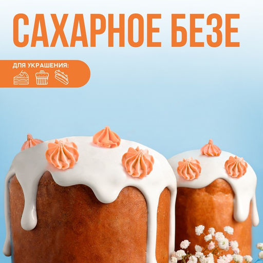 Безе сахарные персиковые KONFINETTA для декора капкейков, торта, куличей и напитков, 30 г.