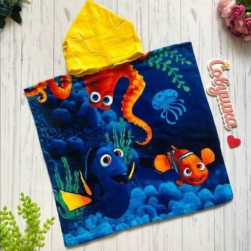 Детское пончо "Осьминог" 60*120 см. велюр-махра хлопок 100%