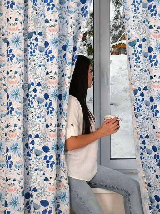Штора набив. Голубой лотос тесьма п/лен 145*260 см.