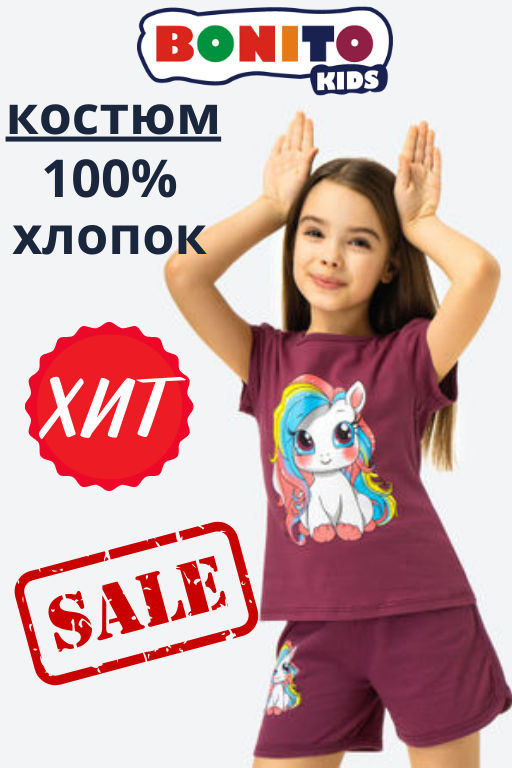 Хлопковый летний костюм для девочки Bonito