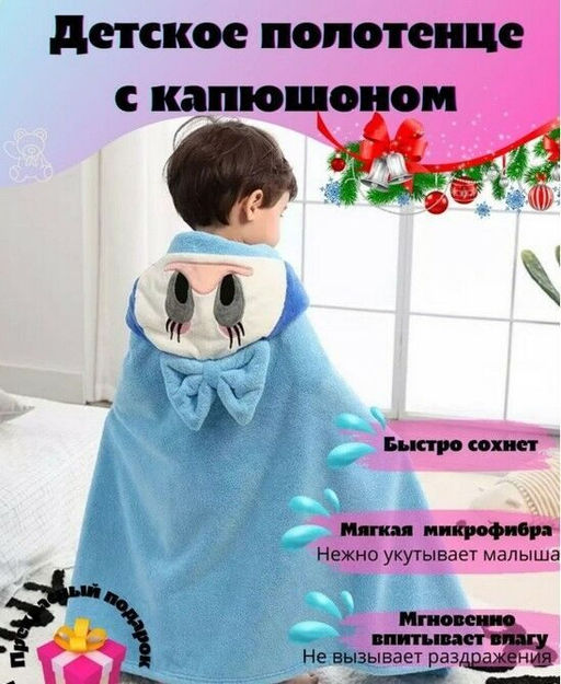 Детское полотенце с капюшоном "Уточка" -ГОЛУБОЙ 70*140 см.на кнопках