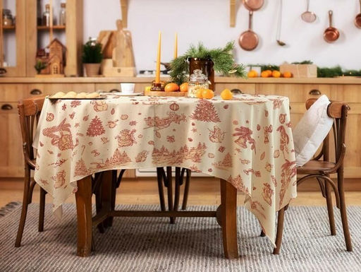 Скатерть "Новогодние традиции"-крем 150*180см. рогожка хлопок 100%