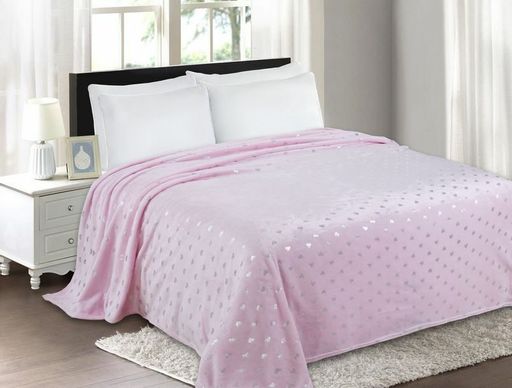 Покрывало "Сердечки" розовый-серебро велсофт Премиум Жаккард 200*220 см