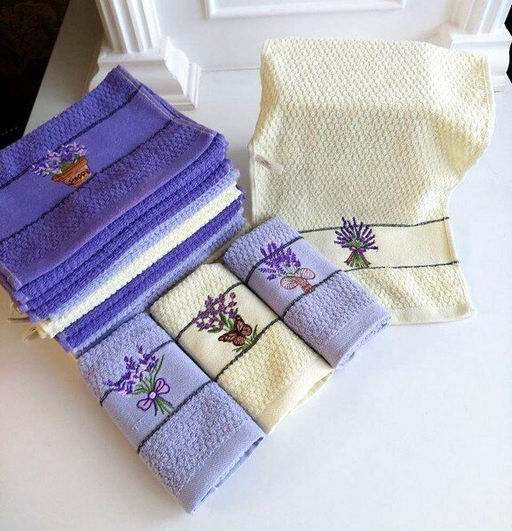Полотенце кухонное махровое-букле "Букет лаванды" 25*50 см. хлопок 100%