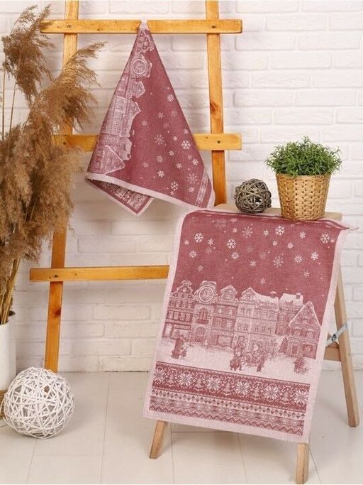 Полотенце Премиум "Зимний город"-бордо 50*70 см.