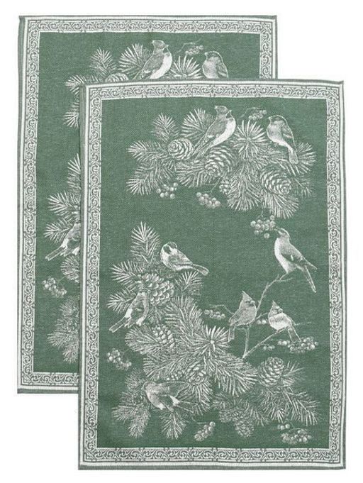 Полотенце жаккардовое Премиум "Зимние птицы"-зелен. 50*70 см.
