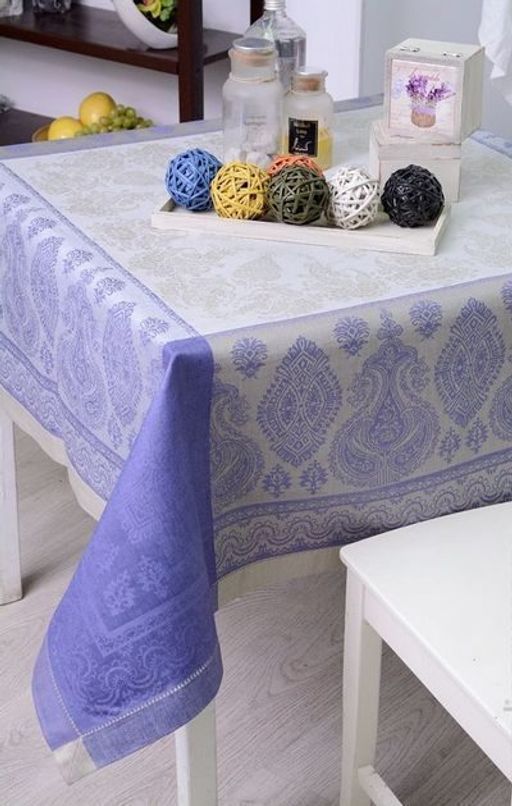 Скатерть Премиум "Восточная сказка"-голуб. 140*140 см. п/лен