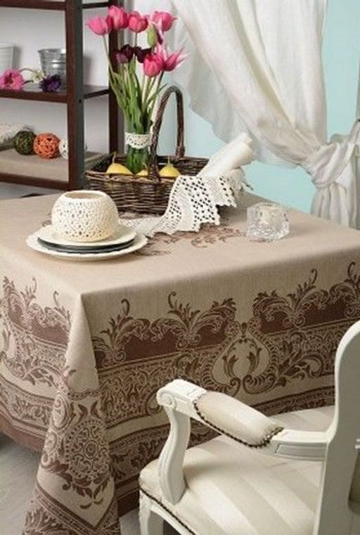 Скатерть Премиум "Акантус"-коричн. 178*178 см. п/лен