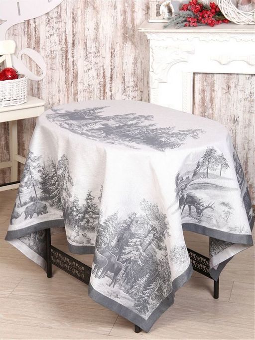 Скатерть Премиум "Зима в лесу"-сер. 150*170 см. п/лен