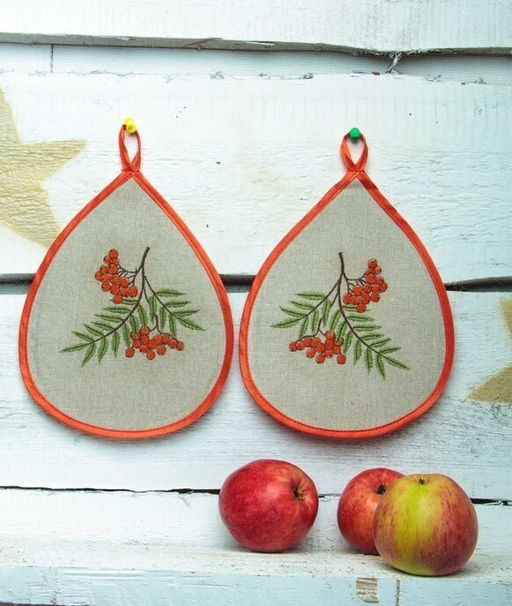 Комплект прихваток с вышивкой "Рябина" лен 100%