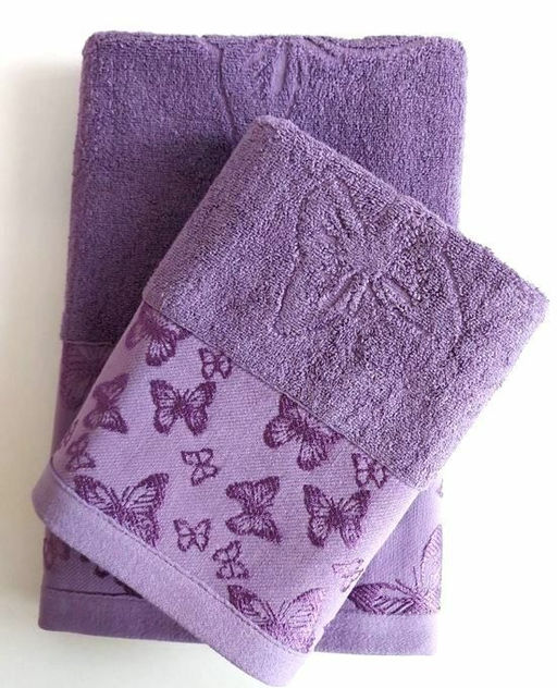 Махровое полотенце "Вальс бабочек"-сиренев. 70*140 см. хлопок 100%