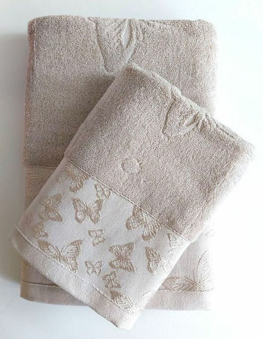 Махровое полотенце "Вальс бабочек"-бежевый 70*140 см. хлопок 100%