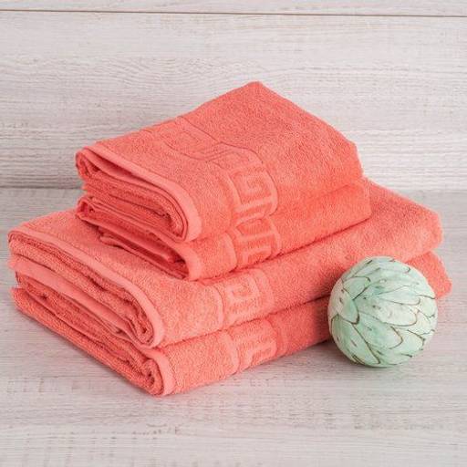 Махровое полотенце "Греческий бордюр"-коралл 50*90 см. хлопок 100%