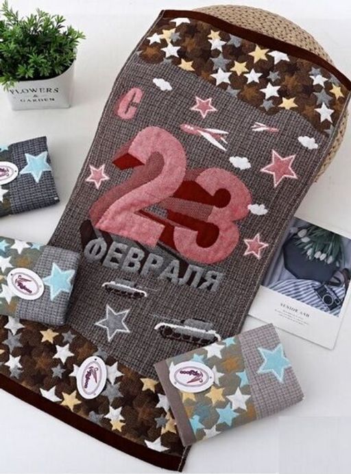 Полотенце "23 Февраля"-Звезды тканное стеганое 35*75 см. хлопок 100%