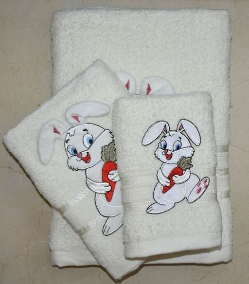 Махровое полотенце "Зайка с морковкой"- МОЛОЧНЫЙ 70*140 см. хлопок 100%