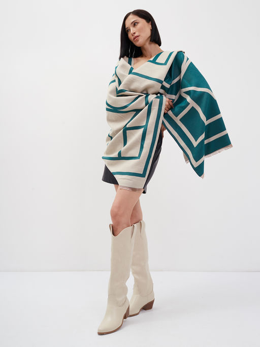 В составе шерсть и кашемир! теплый двусторонний палантин