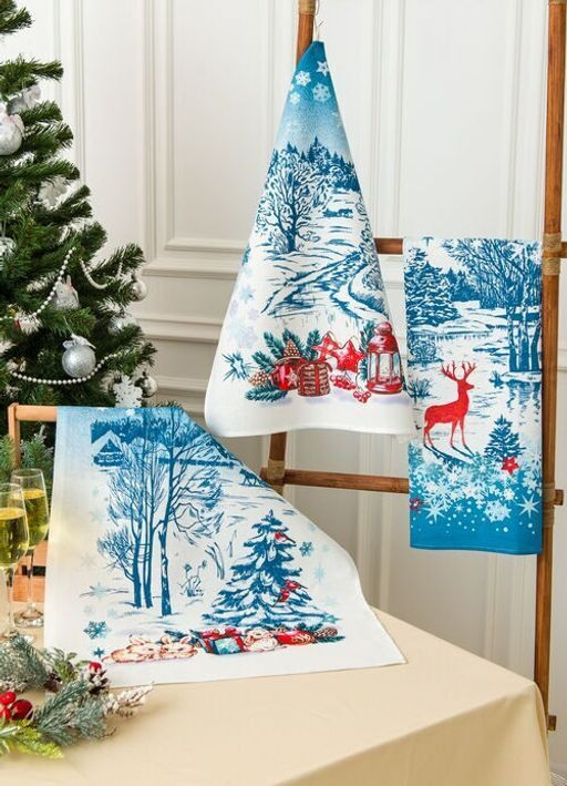 К-т полотенец "Синий иней" 50*60 см. - 3 шт. рогожка хлопок 100%