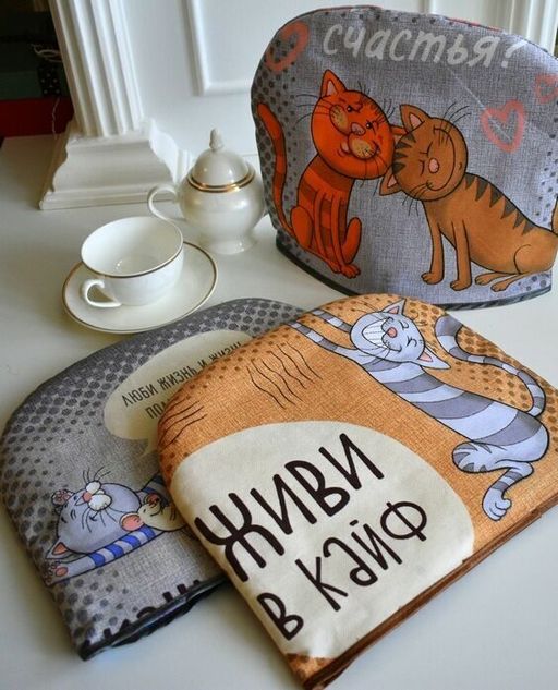 Грелка на чайник "Кошачьи тайны" рогожка хлопок 100%