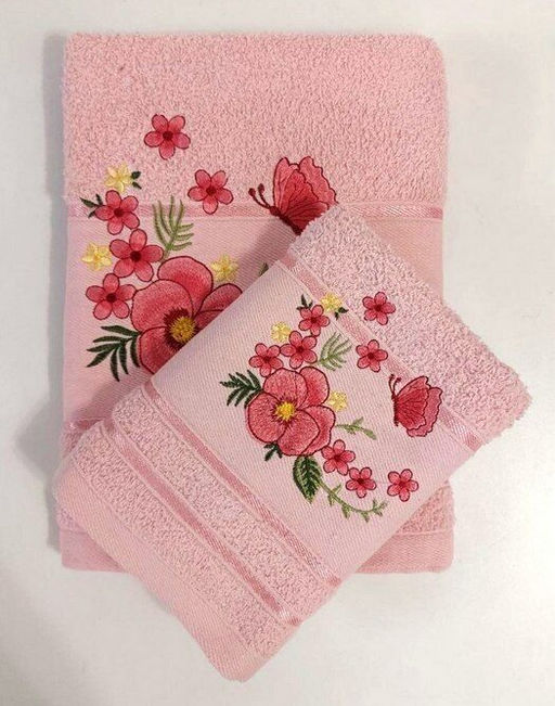 Махровое полотенце "Анютины глазки"-розов. 50*90 см. хлопок 100%