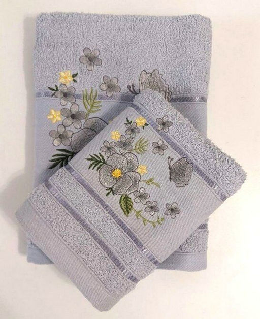 Махровое полотенце "Анютины глазки"-серебристый 70*140 см. хлопок 100%