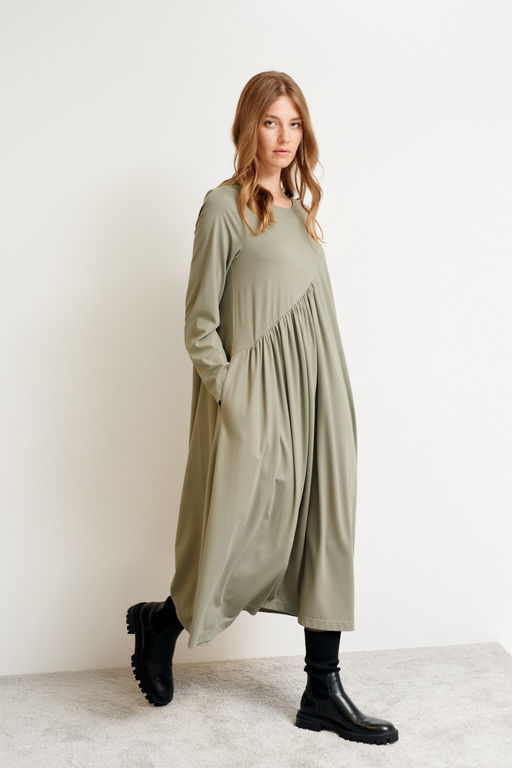 Платье из трикотажа свободного А-силуэта Marlen (Цвет: Хакки)