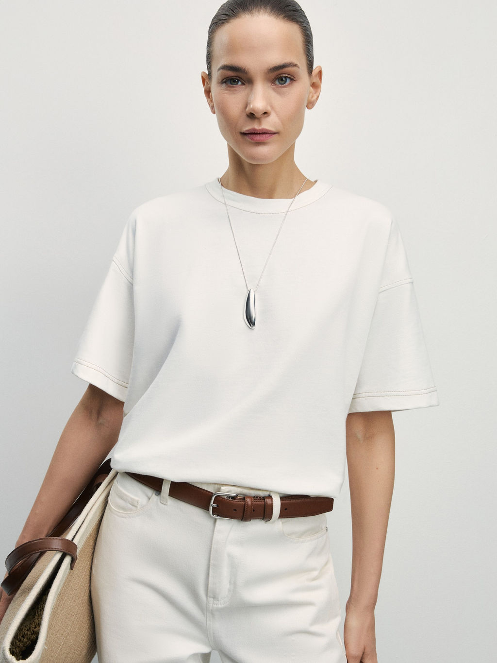 Футболка из плотного хлопка с контрастными швами / Zarina