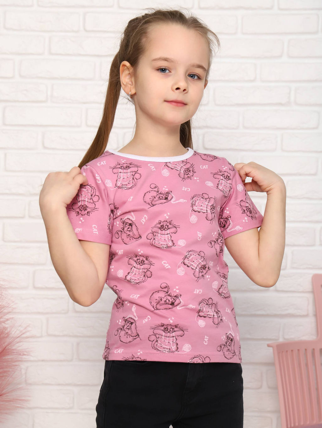 Футболка детская, модель 321, трикотаж (Китти, розовый)