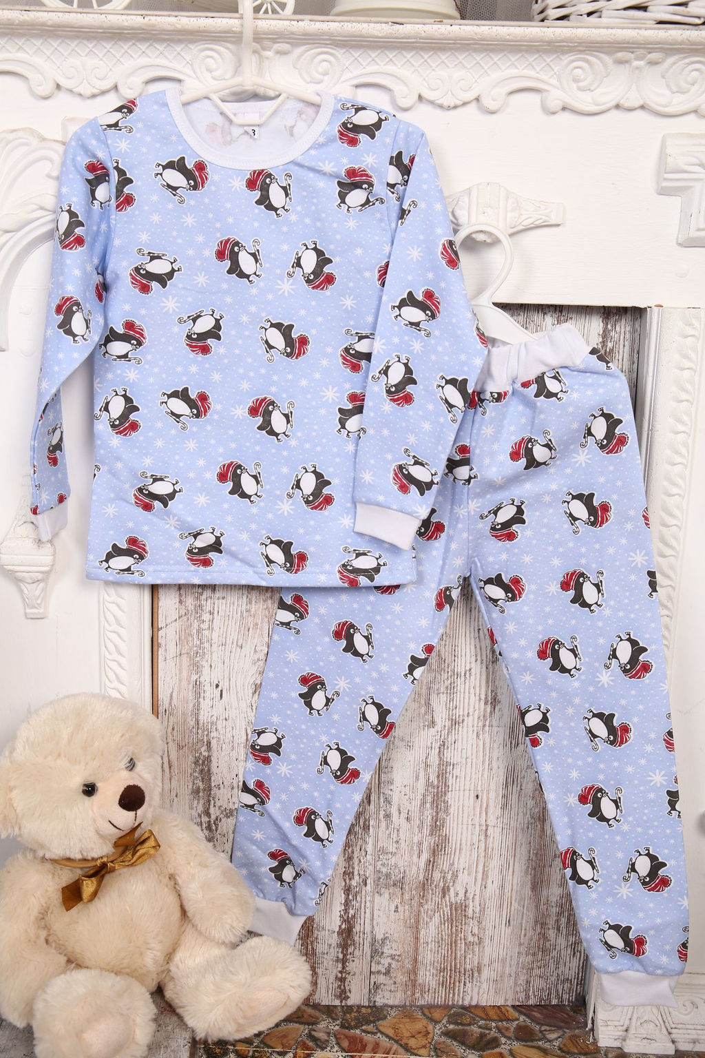 Пижама детская теплая, модель 316, трикотаж (22 размер, Веселые пингвины )