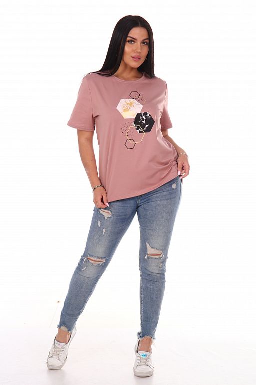 РАСПРОДАЖА Футболка промо 718/пудровый шестигранник