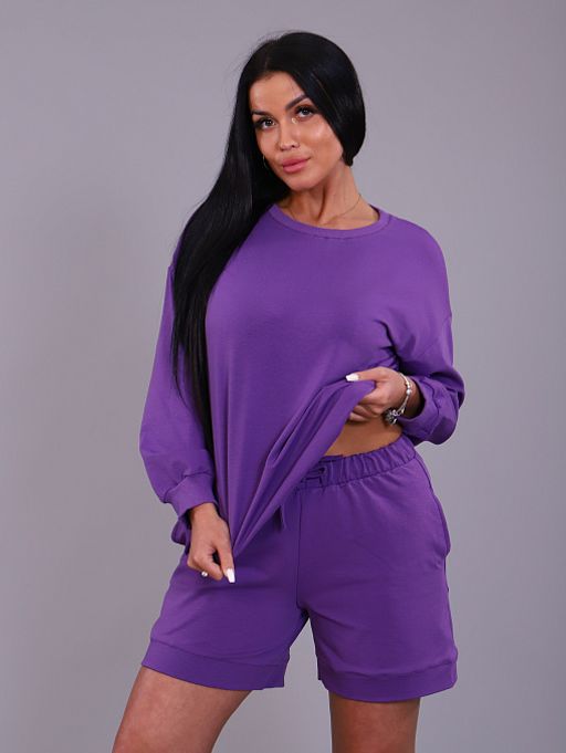 РАСПРОДАЖА Костюм(свитшот+шорты) 910/сиреневый