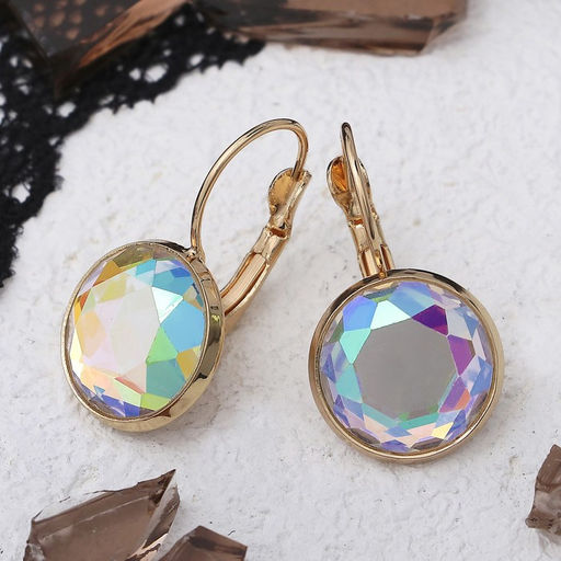 Серьги со стразами "Яркая классика" в обрамлении, цвет радужный в золоте, d=1,4 см