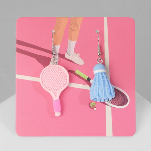 Серьги ассорти "Радость" ракетка и волан, цвет сине-розовый в серебре