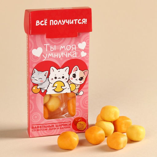 Вафельные шарики в глазури Ты моя умничка вкус: дыня- банан, 50 г.