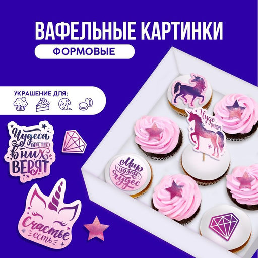 Вафельные картинки съедобные Мир полон чудес для капкейков, торта KONFINETTA, 12 шт.
