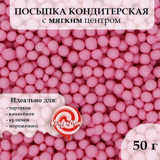 Посыпка кондитерская в цветной глазури "Розовая", 2-5 мм, 50 г