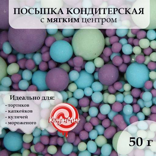 Посыпка кондитерская в цветной глазури (Голубое,сиреневое,"изумруд"), 50 г