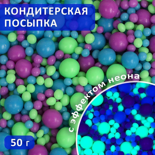 Посыпка кондитерская с эффектом неона в цветной глазури "Синий, лайм, ультрафиолет", 50 г