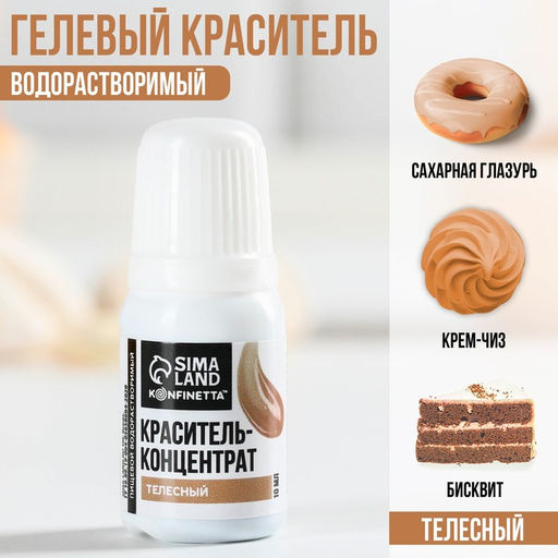 Краситель пищевой гелевый водорастворимый для десертов и пасхальных яиц: телесный, 10 мл.