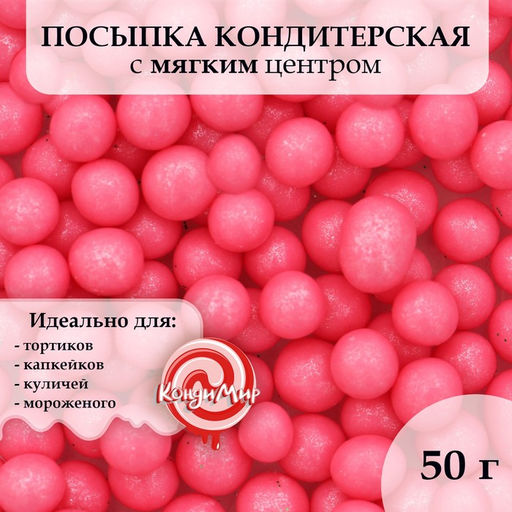 Посыпка кондитерская с мягким центром "Жемчуг" Малиновый 12-13 мм 50г