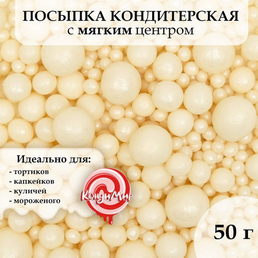 Кондитерская посыпка с мягким центром "Жемчуг", серебро, 50 г