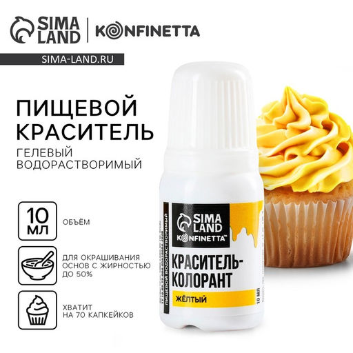 Краситель пищевой гелевый водорастворимый для десертов и пасхальных яиц: желтый, 10 мл.