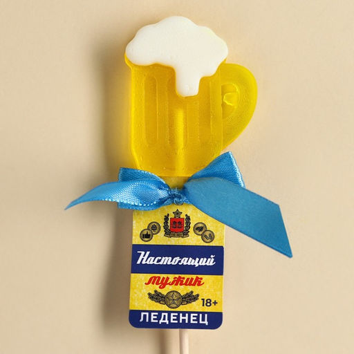 Леденец пиво Настоящий мужик, вкус: мультифрукт, БЕЗ САХАРА, 25 г. (18+)
