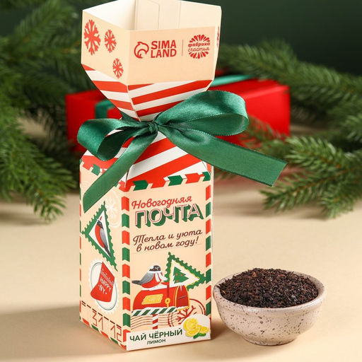 Чай чёрный Новогодняя почта с лимоном, в коробке конфете, 100 г.
