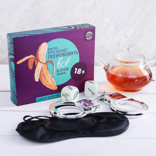 Подарочный набор Попробовать всё: чай 25 г, маска для сна, наручники, игра (18+)