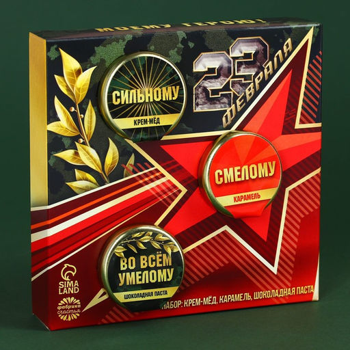 Подарочный набор 23 февраля: шоколадно-ореховая паста 30 г., крем-мёд с апельсином 30 г., солёная карамель 30 г.