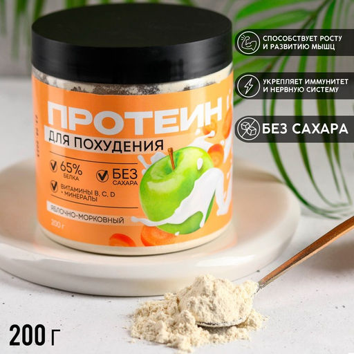 Протеин Полезный коктейль для похудения, вкус: яблочно-морковный, БЕЗ САХАРА, 200 г.