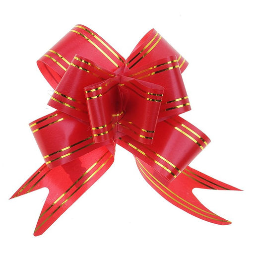 Цена за 10 шт. Бант-бабочка №3 "Золотые полосы", цвет красный, d=7-8 см