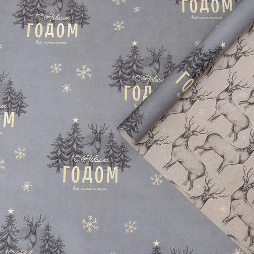 Цена за 10 шт. Бумага упаковочная глянцевая двусторонняя Олени, 70 100 см